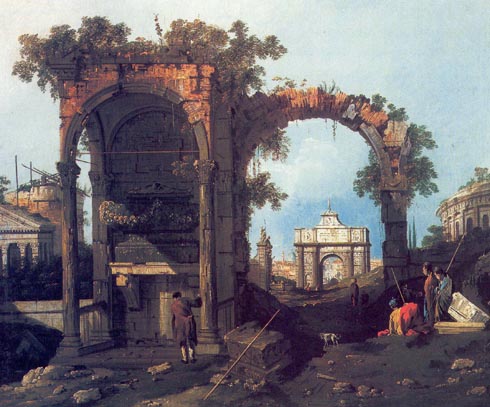 Вот что пишут все современные энциклопедии и справочники по поводу -«руинистической» живописи: - «___ ПОДСТАВЬТЕ НА ЭТО МЕСТО ИМЯ ЛЮБОГО ИЗ, ВЫШЕПЕРЕЧИСЛЕННЫХ ХУДОЖНИКОВ____ - известен живописными фантазиями, чей основной мотив — парки и реальные, а чаще воображаемые «величественные руины» (по выражению Дидро), множество набросков к которым он сделал во время пребывания в Италии».