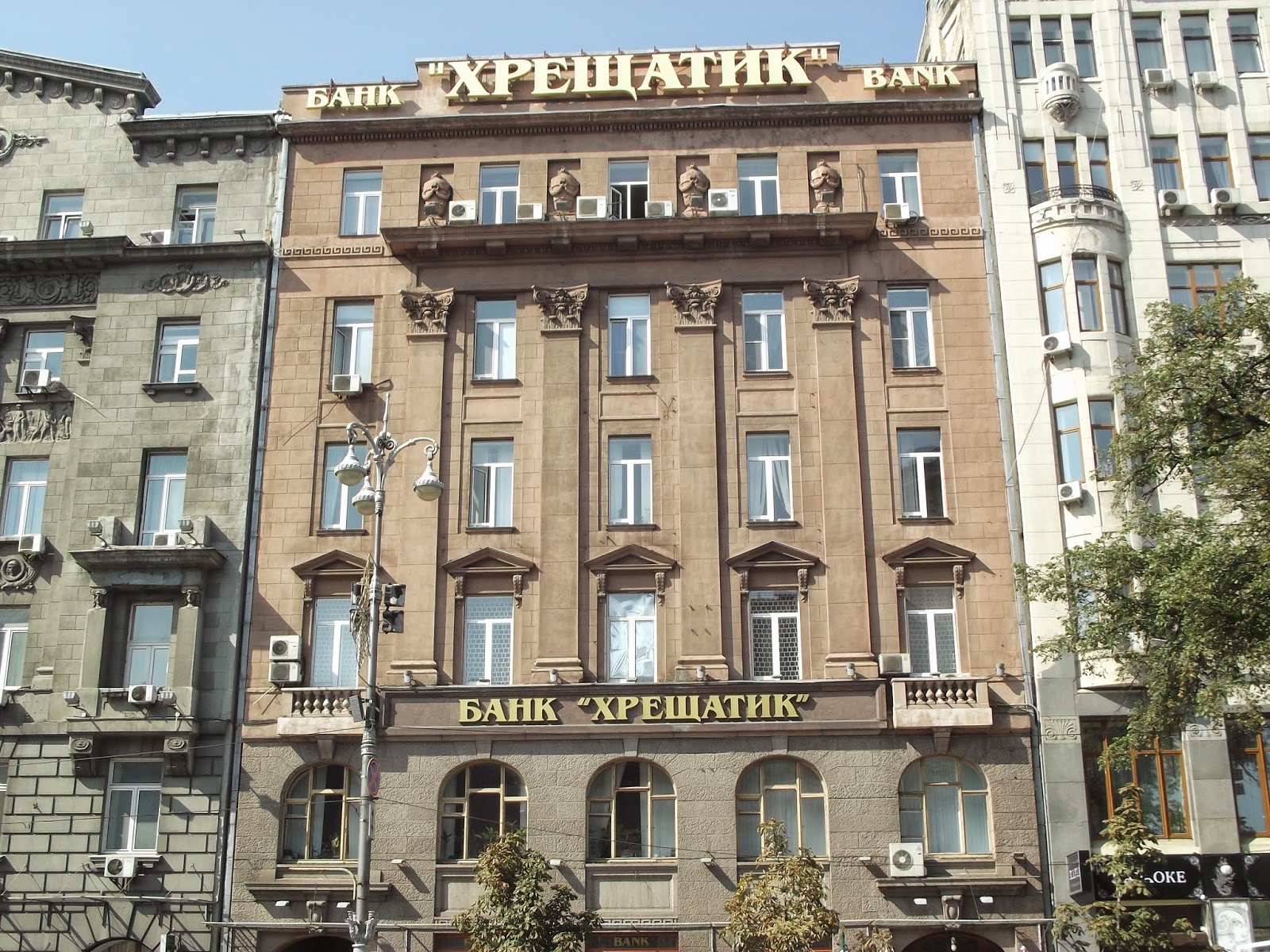 Обращён он фасадом к Крещатику, но разполагается немного повыше на квартал.