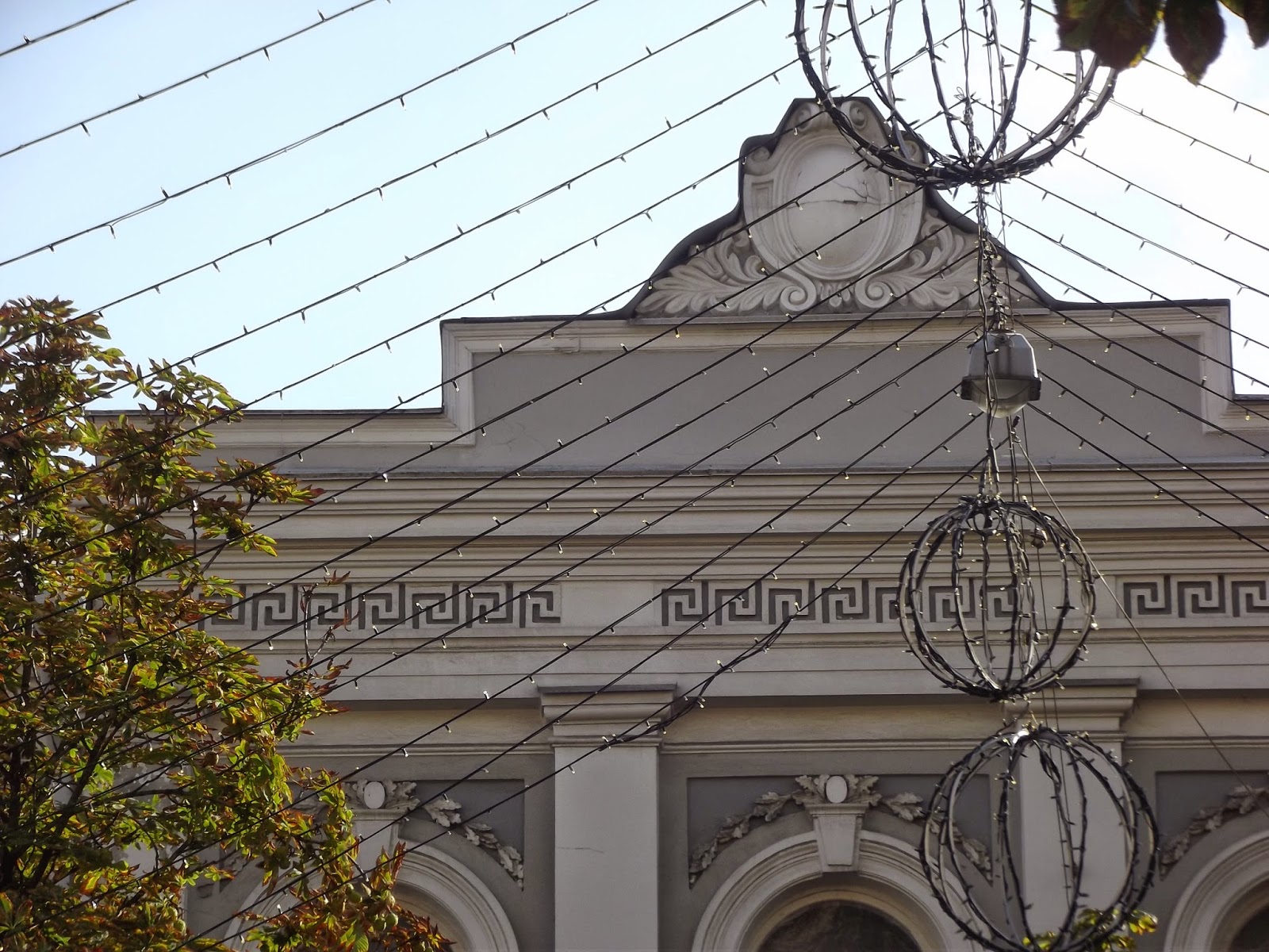 Софии не видно, потому что она попросту не попала в кадр! К сожалению, я не могу определить точное место съемки, но факт остаётся фактом - с улицы Городецкого никак нельзя увидеть Александровский костёл боком, он будет повёрнут где -то на три четверти к смотрящему. Далее, если просто пройтись по Городецкого и просто поднять голову, то обнаруживается интересная нестыковка. Улица Городецкого, 11