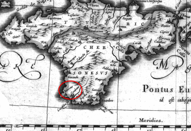 Обратите внимание, что балаклава на карте обозначена не там, где находится сейчас. Зато балаклавская бухта изображена на многих картах, только она раз в 10 по масштабу больше нынешней. Предпоследняя карта уже времён Екатерины также показывает несоразмерно большой залив. Почему?
