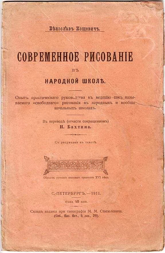 "Современное рисование в народной школе". Векослав Кощевич. Опыт практического руководства к ведению так называемого "свободного" рисования в народных школах и вообще начальных школах. С рисунками в тексте. С.-Петербург 1911 год.
