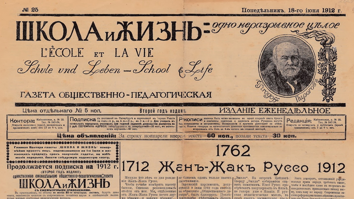 Еженедельная общественно-педагогическая газета "Школа и Жизнь", № 25, 18 июня 1912 года.