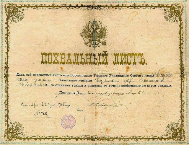 В 2-х классном училище при ф-ке Т-ва Мануфактур Бр. Г. и А. Горбуновых. 1913 год.